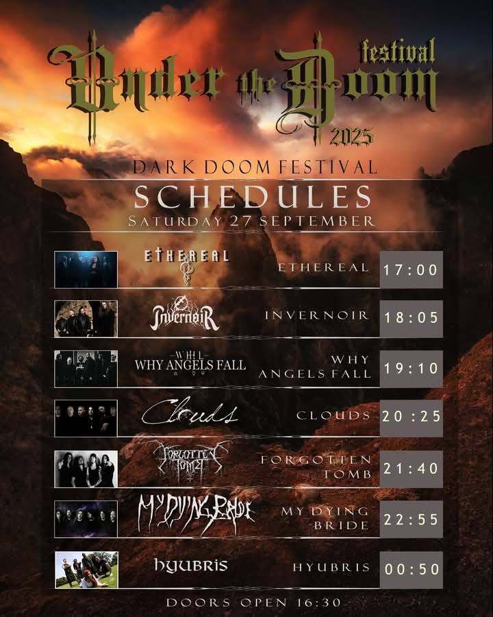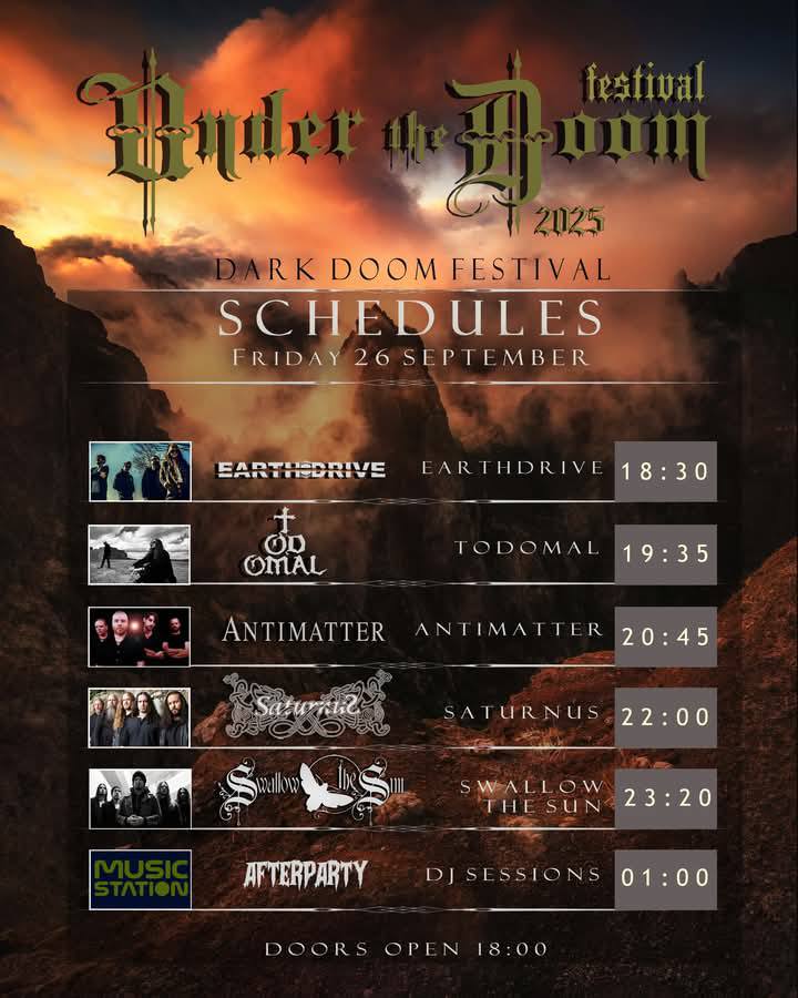 Depois de termos publicado a nossa antevisão do festival, onde apresentamos todas as bandas em cartaz, chegou a hora de partilhar com os nossos leitores todos os detalhes que precisam de saber sobre o Under The Doom 2025, organizado pela Notredame Productions, que se realiza nos próximos dias 26 e 27 de Setembro, na Music Station em Lisboa.