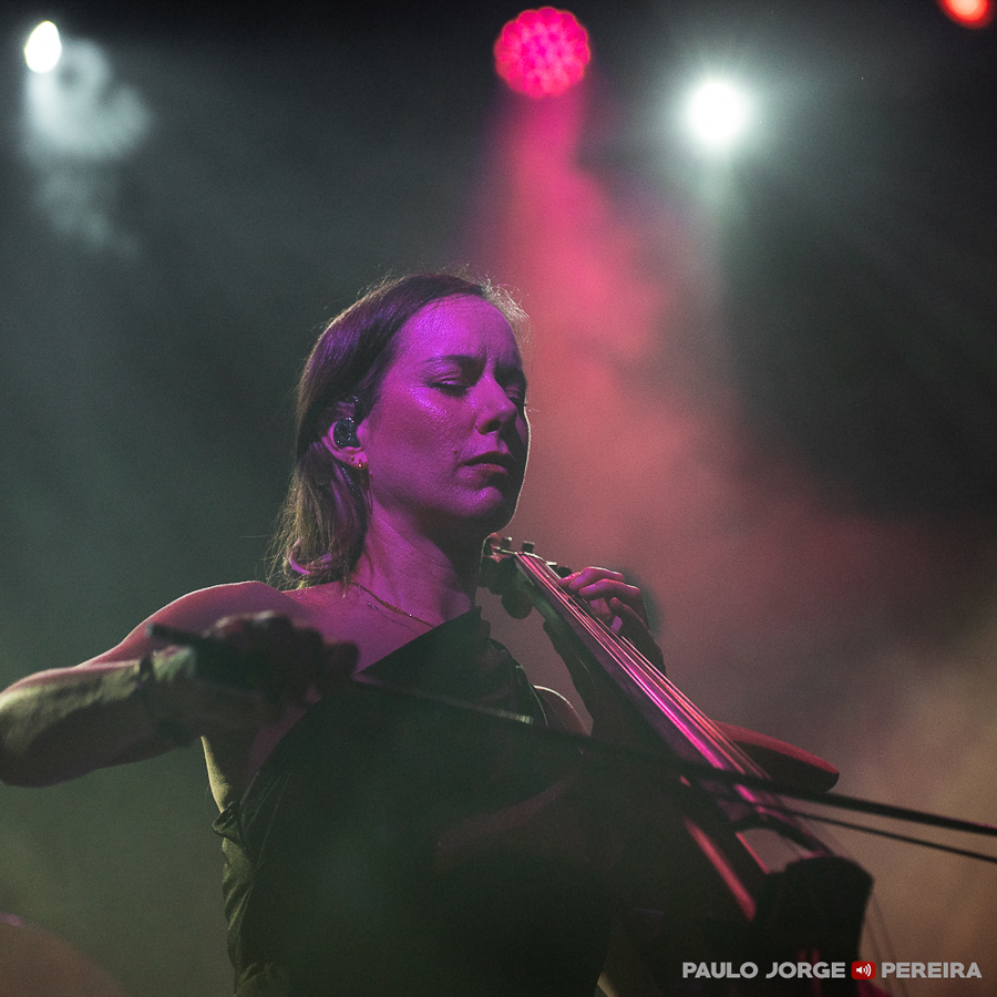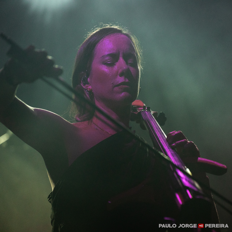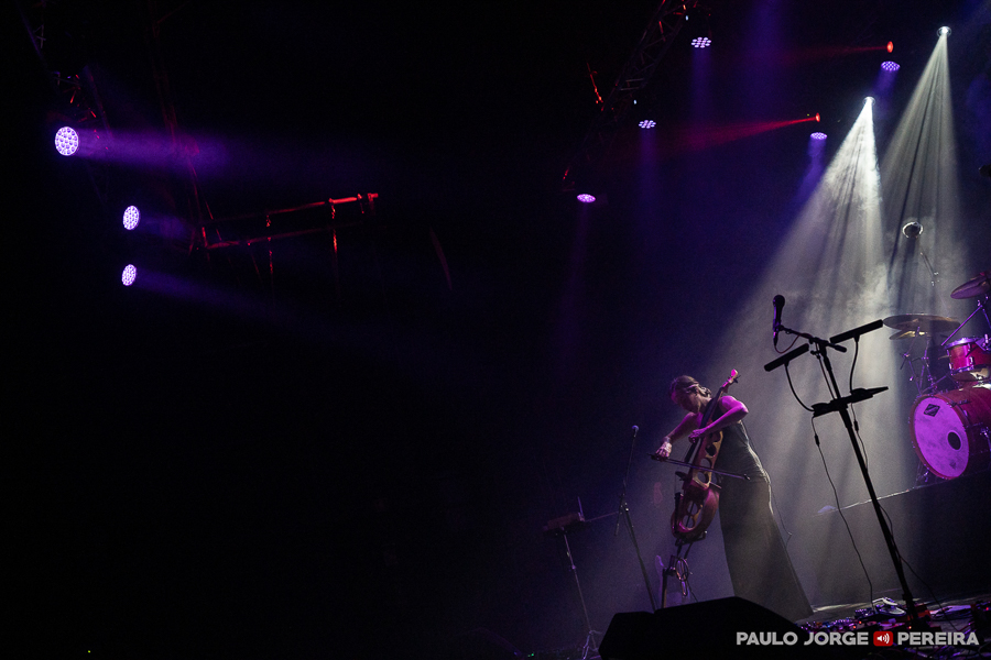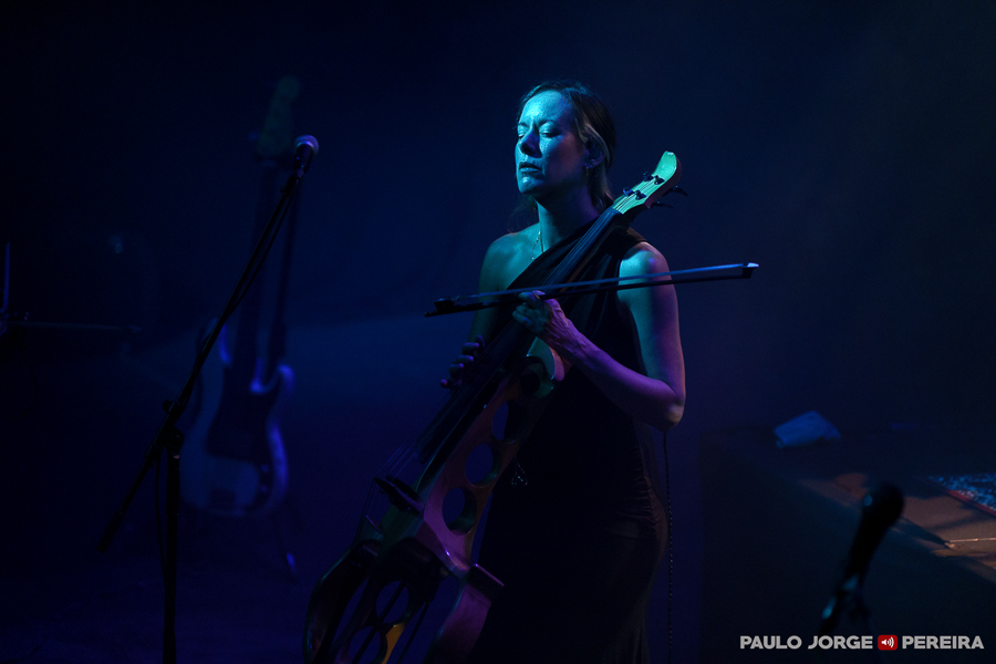 Como aperitivo (que os nossos ouvidos consomem com todo o gosto), Jo Quail entrou sozinha à hora prevista para uma actuação intensa a violoncelo eléctrico em camadas de pedais de efeitos que funcionaram como o prelúdio ideal para a viagem emocional que se seguiria. Apresentou-se depois de um «boa noite» com o qual antecedeu “Butterfly Dance”, uma das três peças que trouxe a Lisboa ao longo dos cerca de 30 minutos de concerto. “Embrace” manteve o foco em Notan, álbum novo lançado há menos de um mês, antes da despedida com uma visita a Exsolve (2018) na forma de “Forge”.
